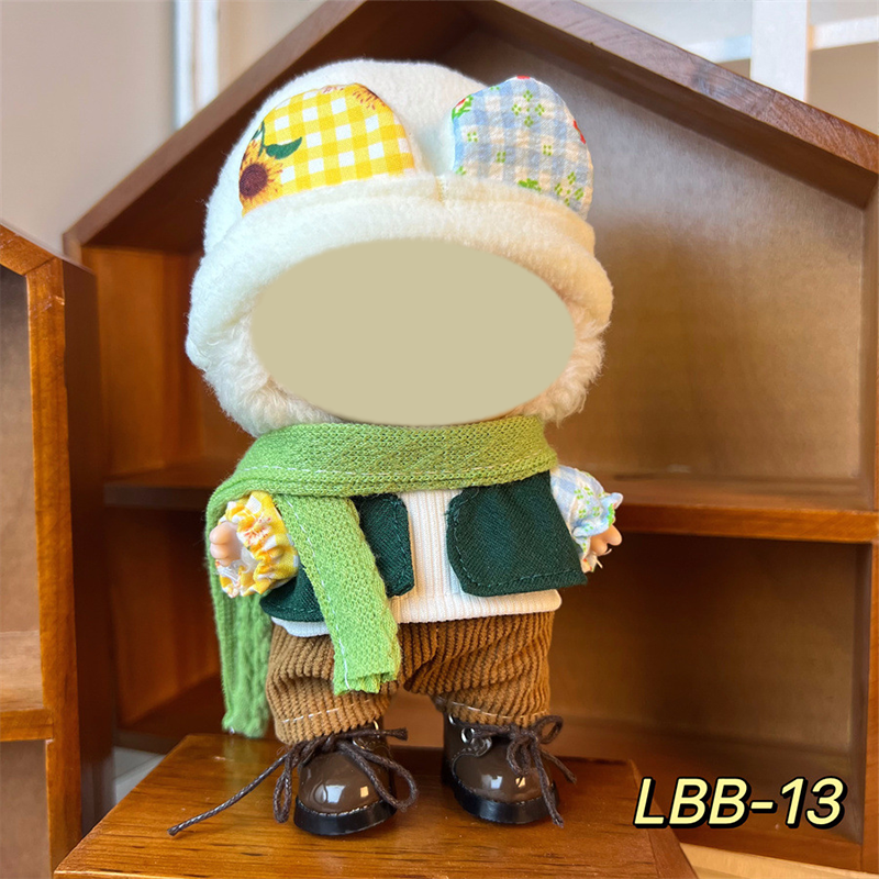 🍀 Soft & Cozy|Bring the countryside charm to your Doll! This patchwork outfit with earthy tones, gingham ears, and cozy scarf adds a warm vintage touch. 🧣🍂
